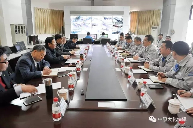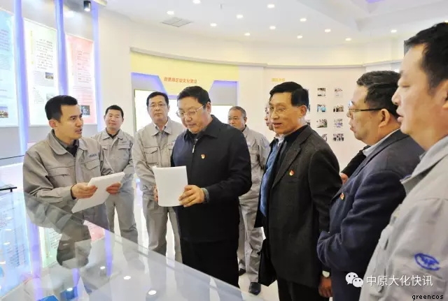 在天然氣化工裝置區(qū),馬富國在聽取了有關(guān)生產(chǎn)裝置的運行情況介紹后,又向化肥事業(yè)部的管理人員詳細詢問了他們在經(jīng)營管理、員工培訓、新產(chǎn)品開發(fā)等方面的好經(jīng)驗、好做法,并勉勵大家不僅要優(yōu)化裝置運行,搞好安全生產(chǎn),而且要不斷進行知識更新,開闊眼界,努力開發(fā)出具有高附加值的產(chǎn)品,走高端發(fā)展的道路。在煤化工裝置區(qū),馬富國親切看望了生產(chǎn)一線員工,并對甲醇裝置長周期運行所取得的成績給予了充分肯定,同時要求甲醇事業(yè)部要安全、環(huán)保一起抓,精心操作,穩(wěn)定運行。在中原大化公司展廳,馬富國一行興致勃勃地參觀了公司發(fā)展歷程展覽,并指示中原大化要扎實做好綠宇公司新三板上市的各項工作,加快推進上市步伐。
